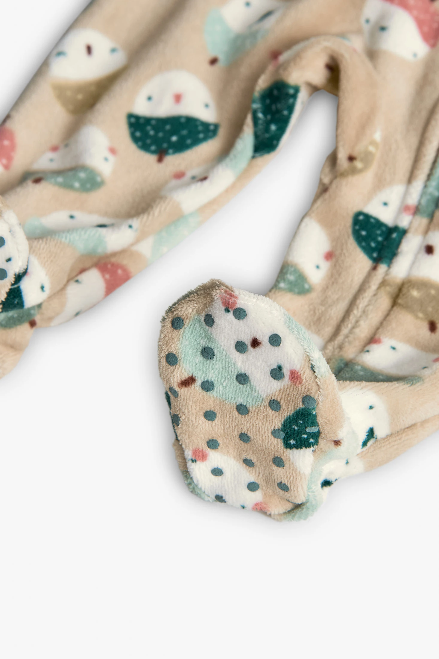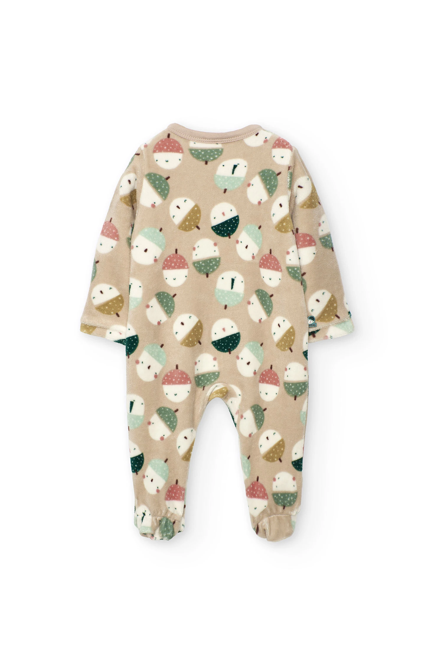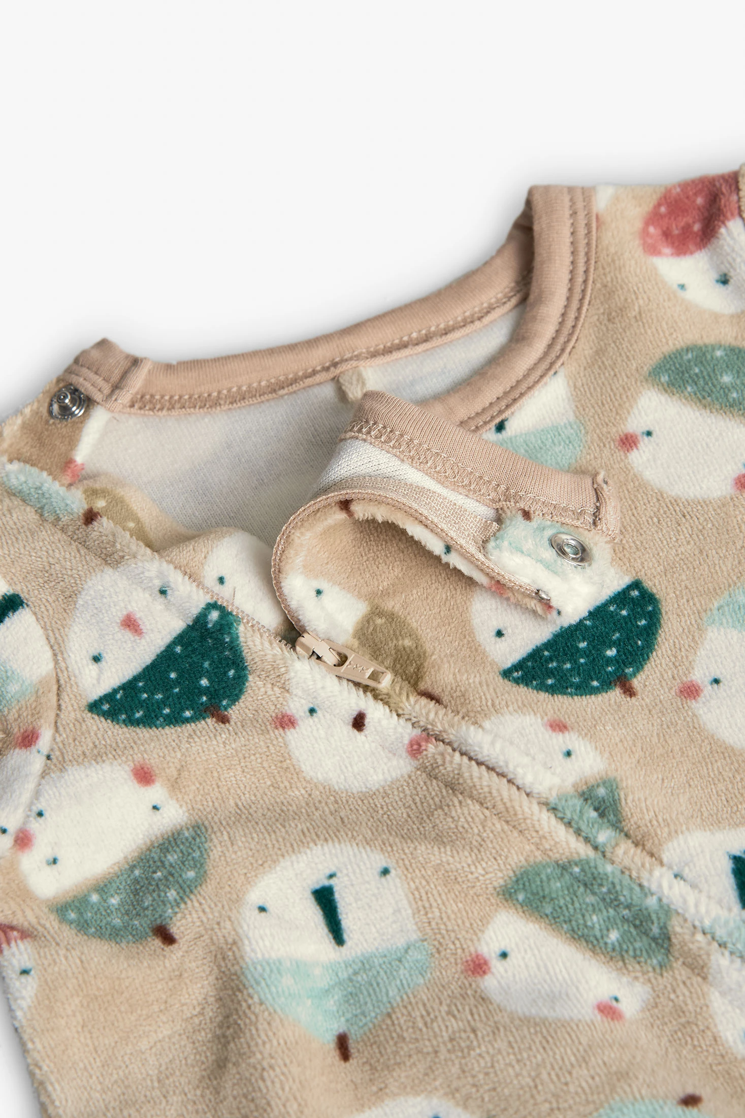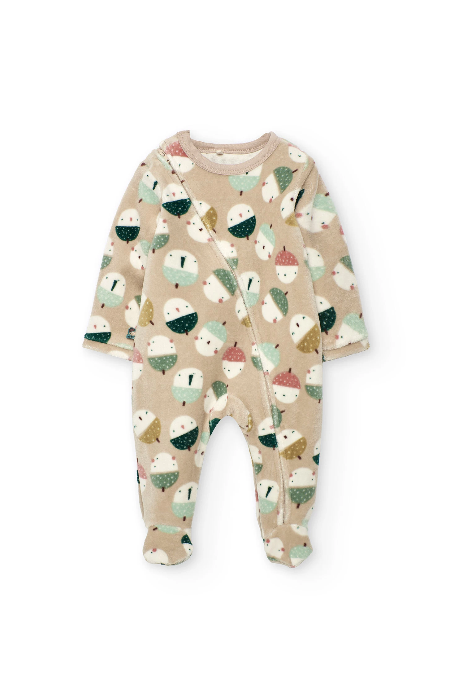 Velour baby sleepsuit with animals in beige