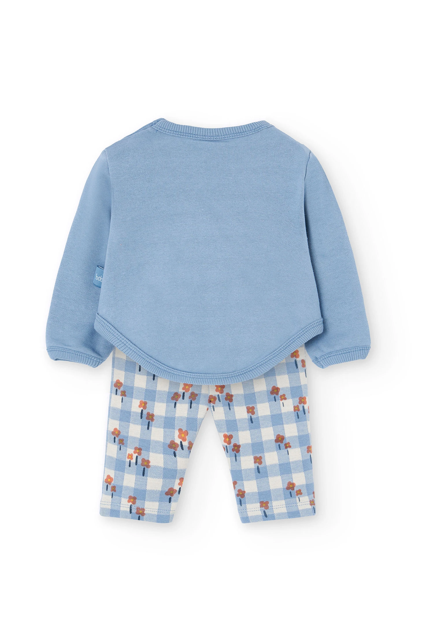 Blue knit set for baby girl that includes a jumper and leggings, ideal for providing comfort and warmth during the cold months. The jumper, crafted in soft knit fabric, ensures a cosy feeling for your little one, while the matching leggings allow for versatile combinations with other accessories or clothes. Available in sizes from 1 month to 2 years, this set is perfect for casual and family occasions during the autumn and winter season.