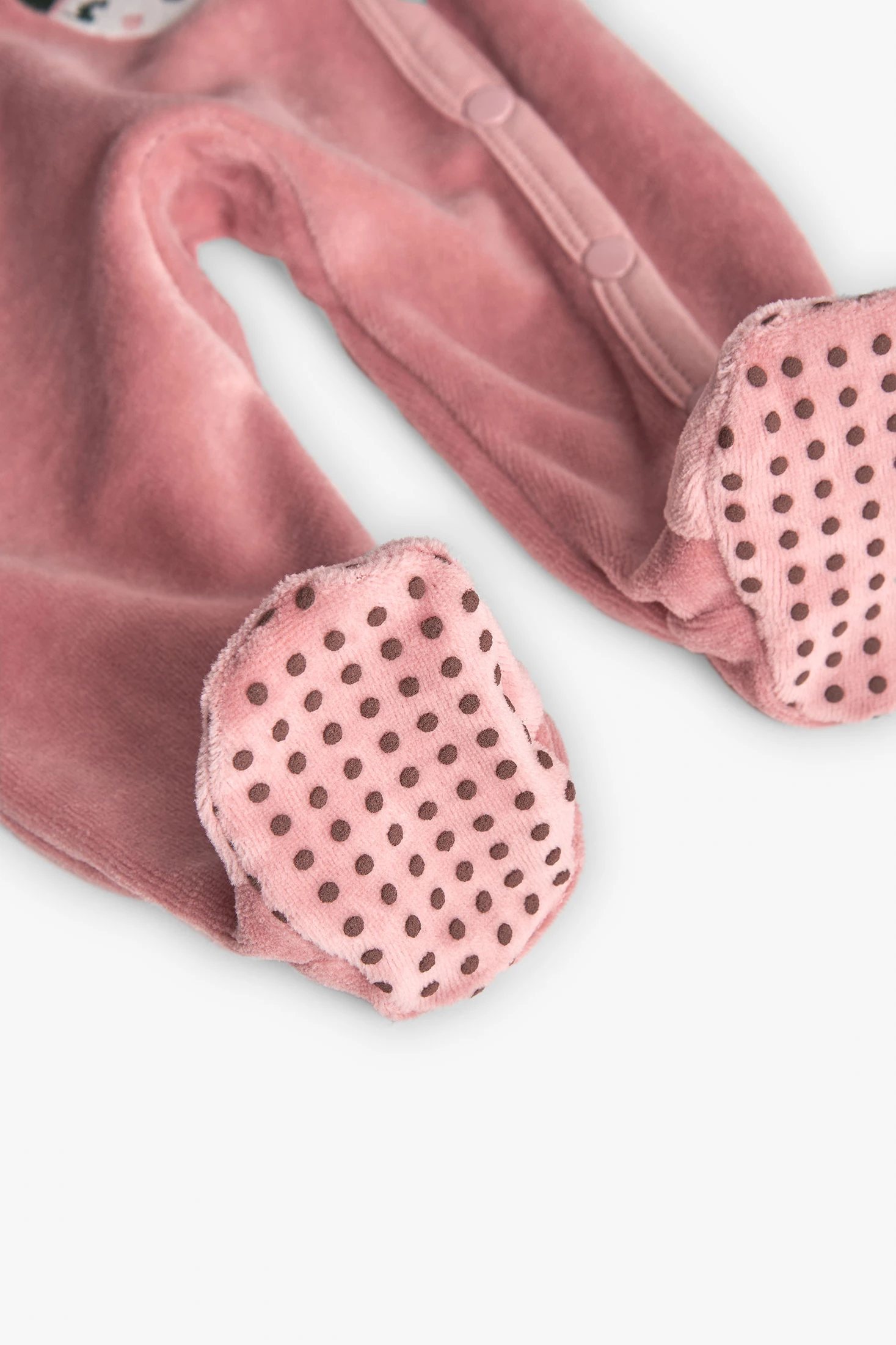 Pink velvet knit baby sleepsuit