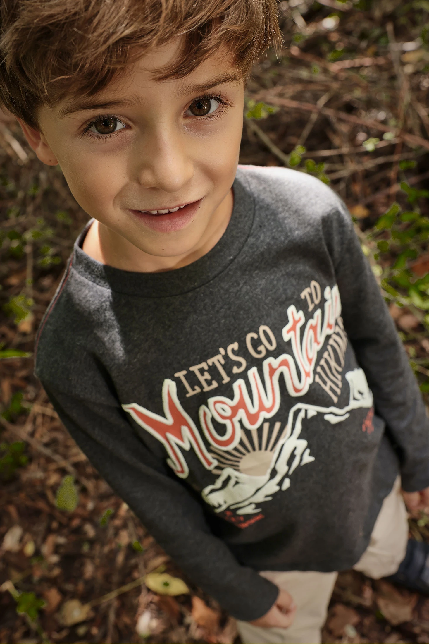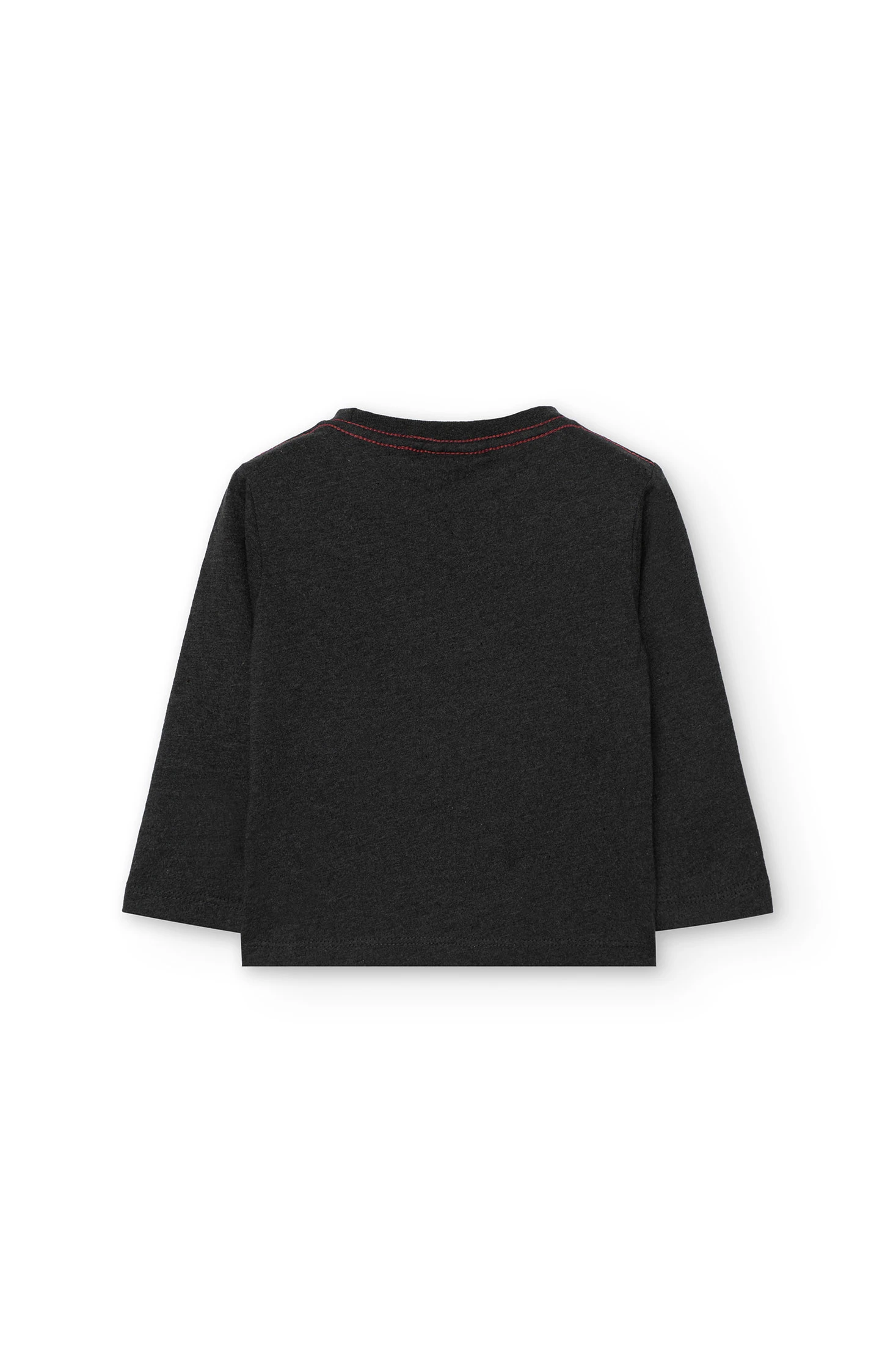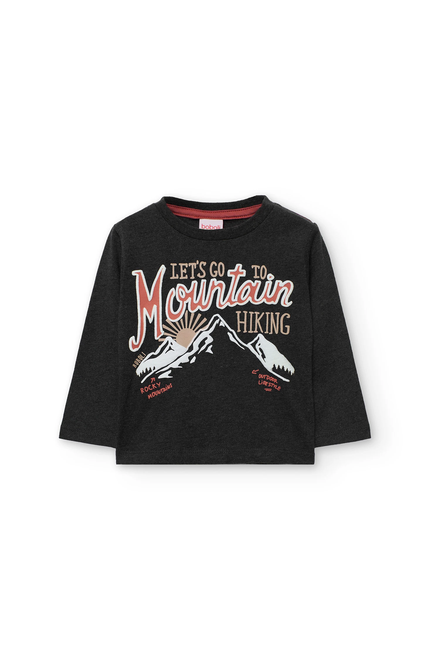 Grey knitted T-shirt for boys, perfect for the autumn and winter seasons. Crafted from a soft fabric, it ensures all-day comfort. It features a charming mountain design, adding a touch of fun to children's clothing. Its round neck makes it easy for everyday wear and is an ideal choice to pair with casual trousers on cooler days. Available in sizes from 12 months to 10 years, it is a practical and modern item to complete the wardrobe of the little ones.