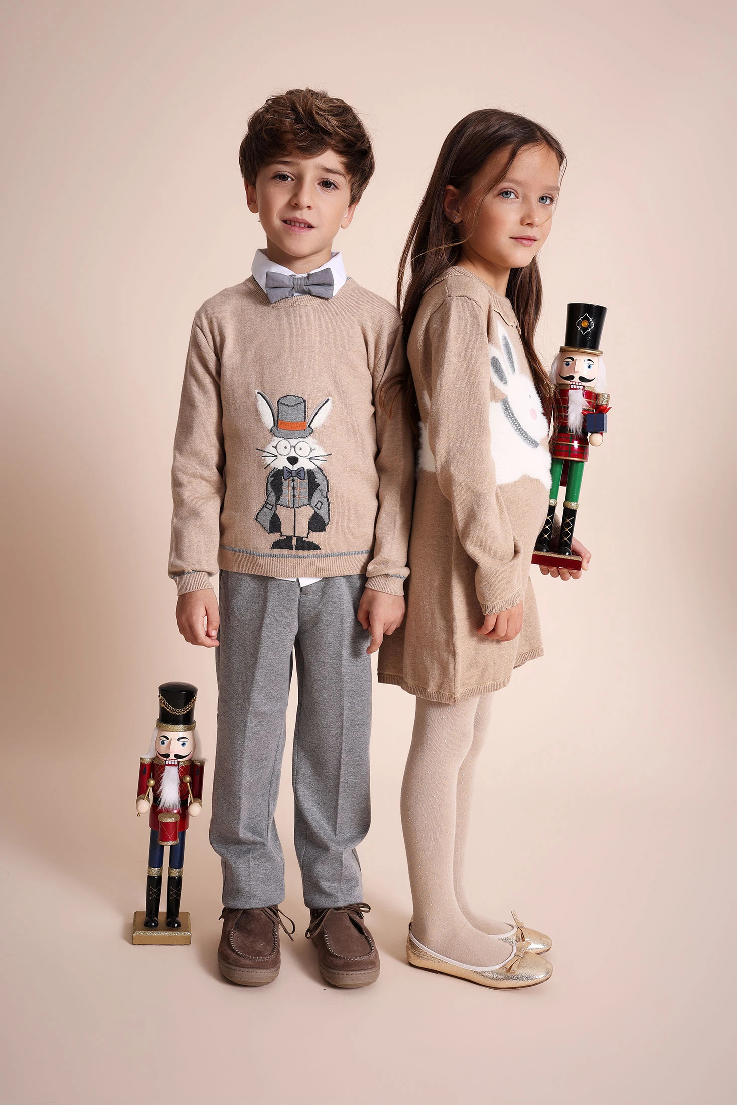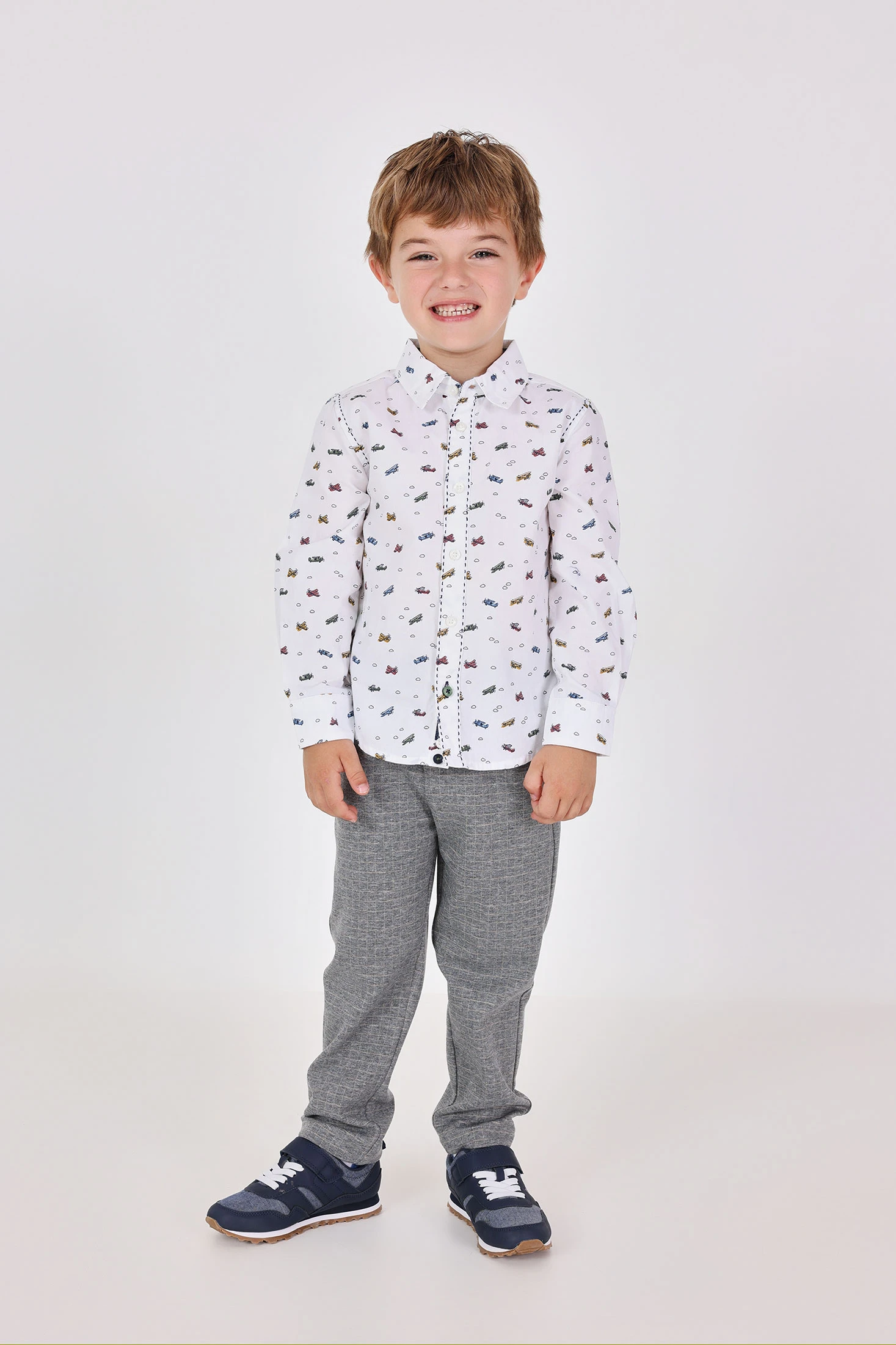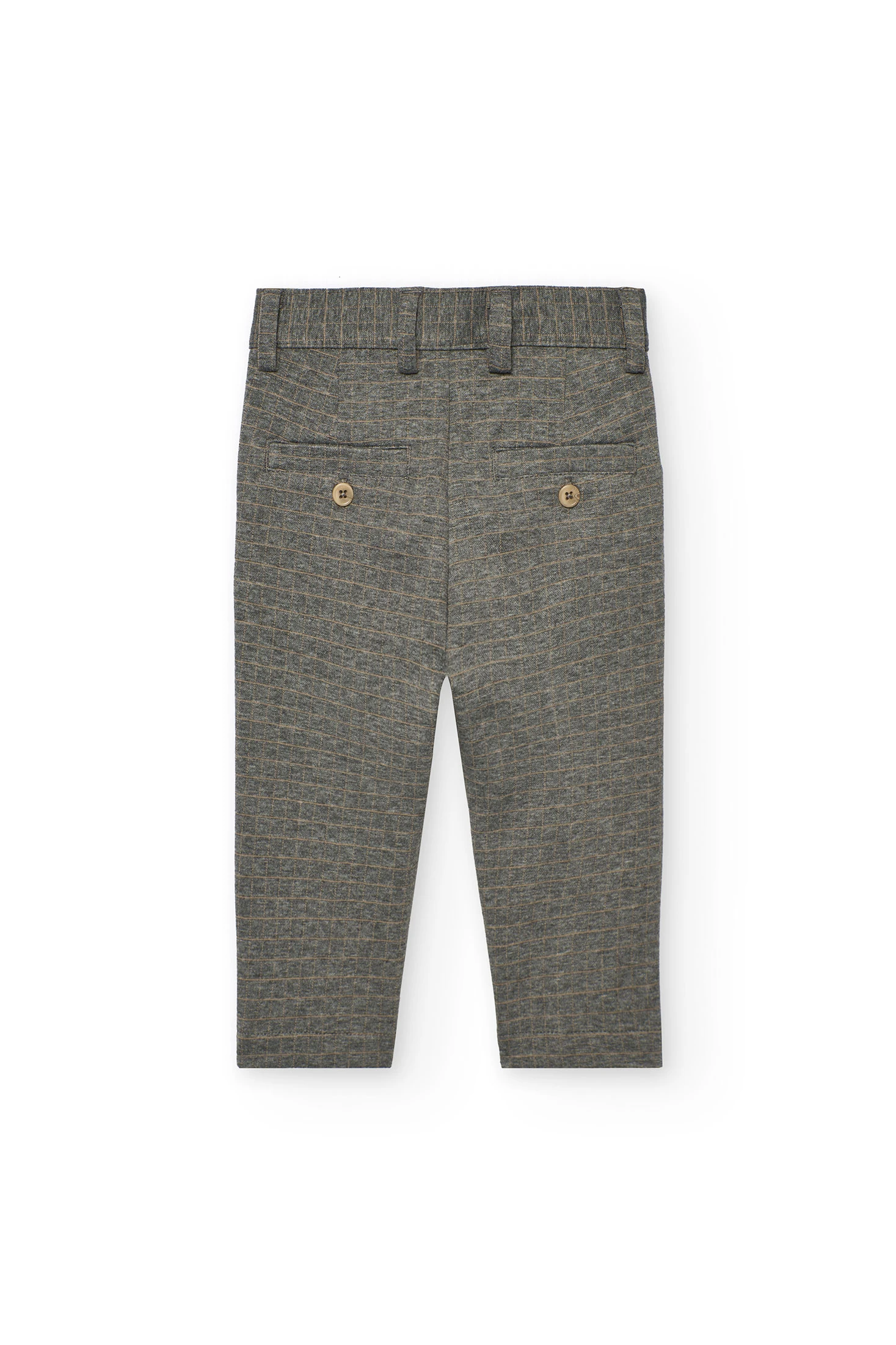 Knitted trousers for boys feature a checked design in grey marled tones, offering a modern and versatile look. Perfect for any season, its soft and comfortable fabric ensures freedom of movement, ideal for both everyday wear and special occasions. Available up to size 10, it fits comfortably on growing children. Pair it with solid coloured shirts or jumpers for a balanced and stylish outfit. Made with high-quality materials, it is a durable and easy-to-care-for garment, essential in a child's wardrobe.