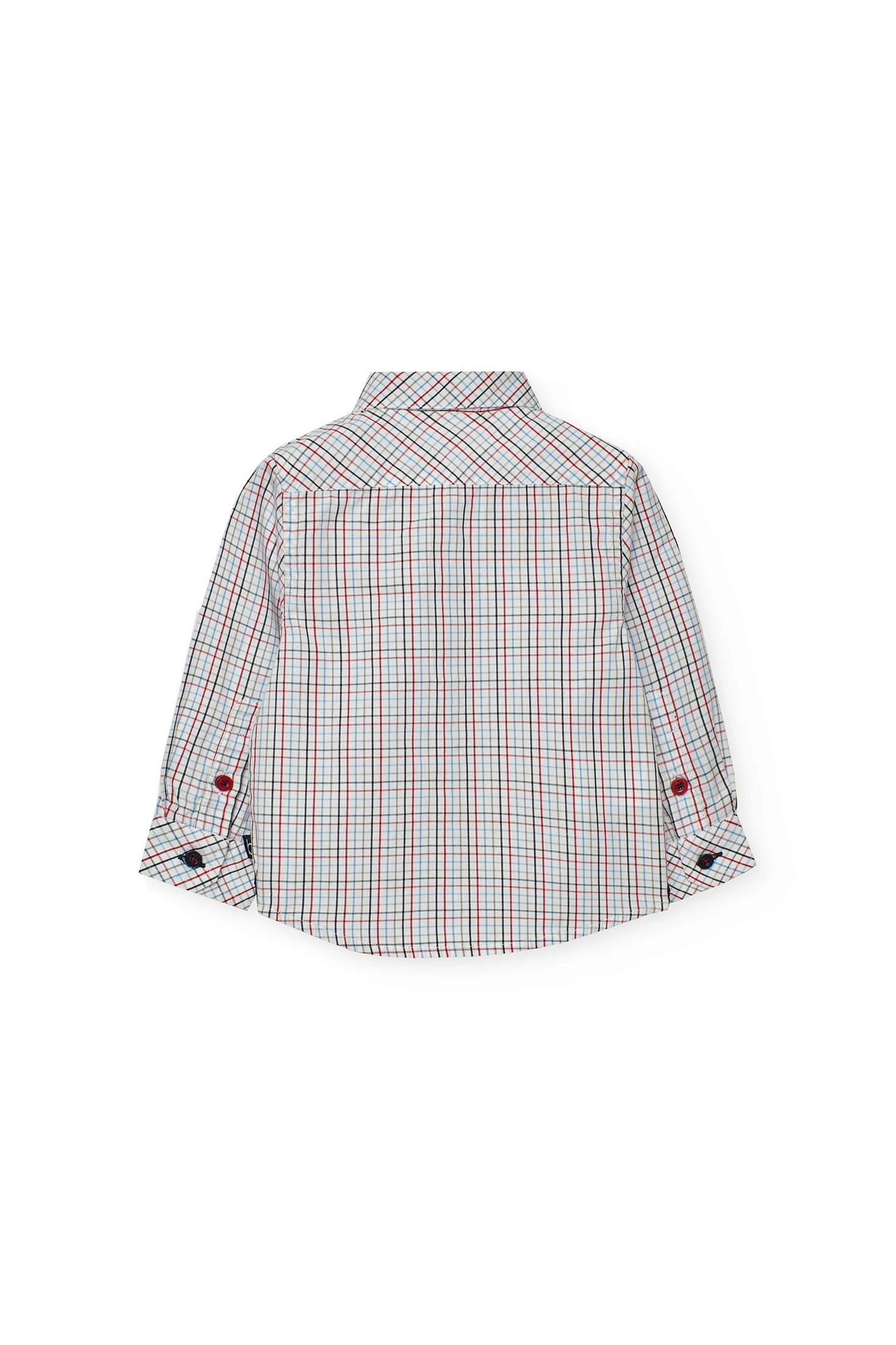 Poplin shirt for boys features a checked design in blue and red tones on a white background, ideal for casual outings or special events. Crafted from soft and comfortable poplin fabric, it includes a classic collar and front button fastening. Perfect for pairing with denim or chinos, it adds a timeless style to any outfit. Available in sizes from 12 months to 10 years, it is an essential piece in any little one's wardrobe.