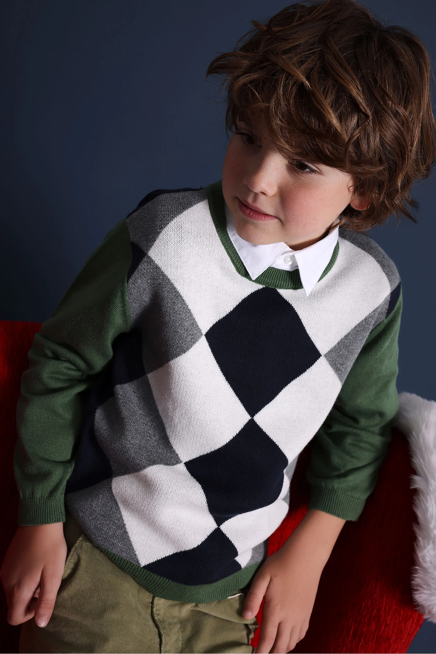 Green knitted jumper for boys, perfect for the autumn and winter months, offering warmth and softness to the child's delicate skin. Crafted from high-quality materials, it provides comfort with every wear. Available in sizes ranging from 12 months to 10 years, this jumper is versatile and can be easily paired with trousers. Its elegant and delicate design adds a touch of style to outfits for any occasion, making it an essential piece in your little one's wardrobe.
