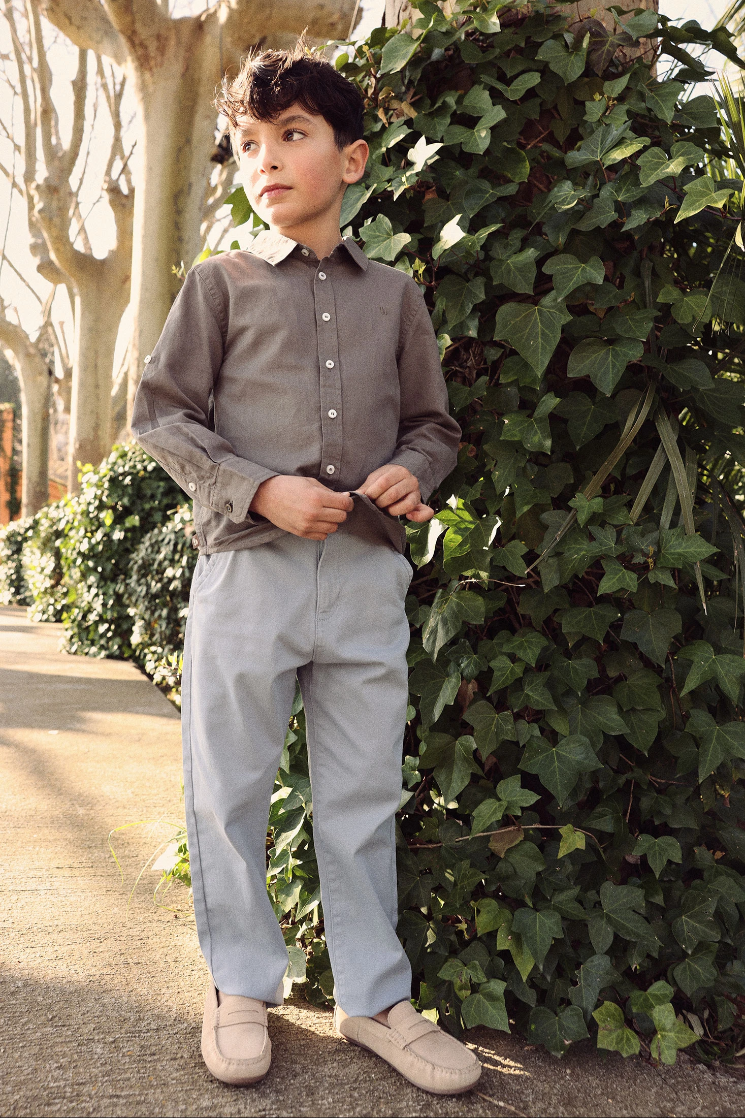 Blue cotton trousers for boys, ideal for combining style and comfort. Its classic and plain design makes it perfect for any occasion, from casual events to more formal outings. The cotton fabric ensures softness and flexibility, allowing freedom of movement. Available in sizes from 2 to 14 years, it adapts to a child's growth. Button fastening and simple design make it easy to wear and match with different garments, providing a versatile and modern look.