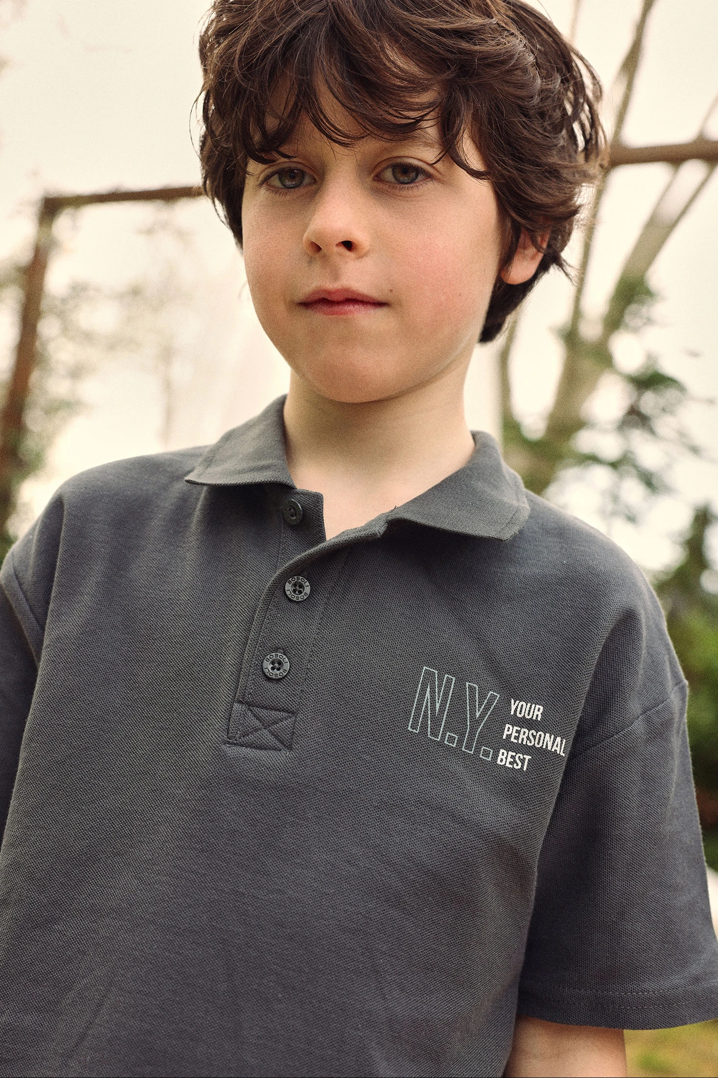 Children?s polo shirt made from grey cotton, a soft and comfortable material, ideal for children?s sensitive skin. The classic design features a polo collar and front buttons, making it easy to put on. Perfect for ages 2 to 14, it is versatile for both casual and slightly more formal occasions. Its grey colour makes it easy to pair with different styles and garments. A subtle detail on the chest adds a touch of interest without being overwhelming, making it an elegant option for any wardrobe.