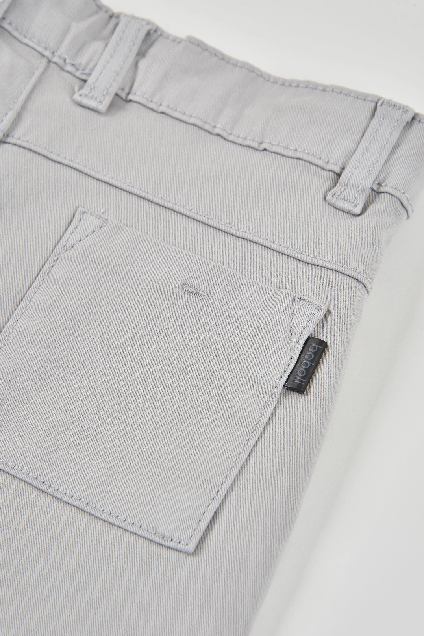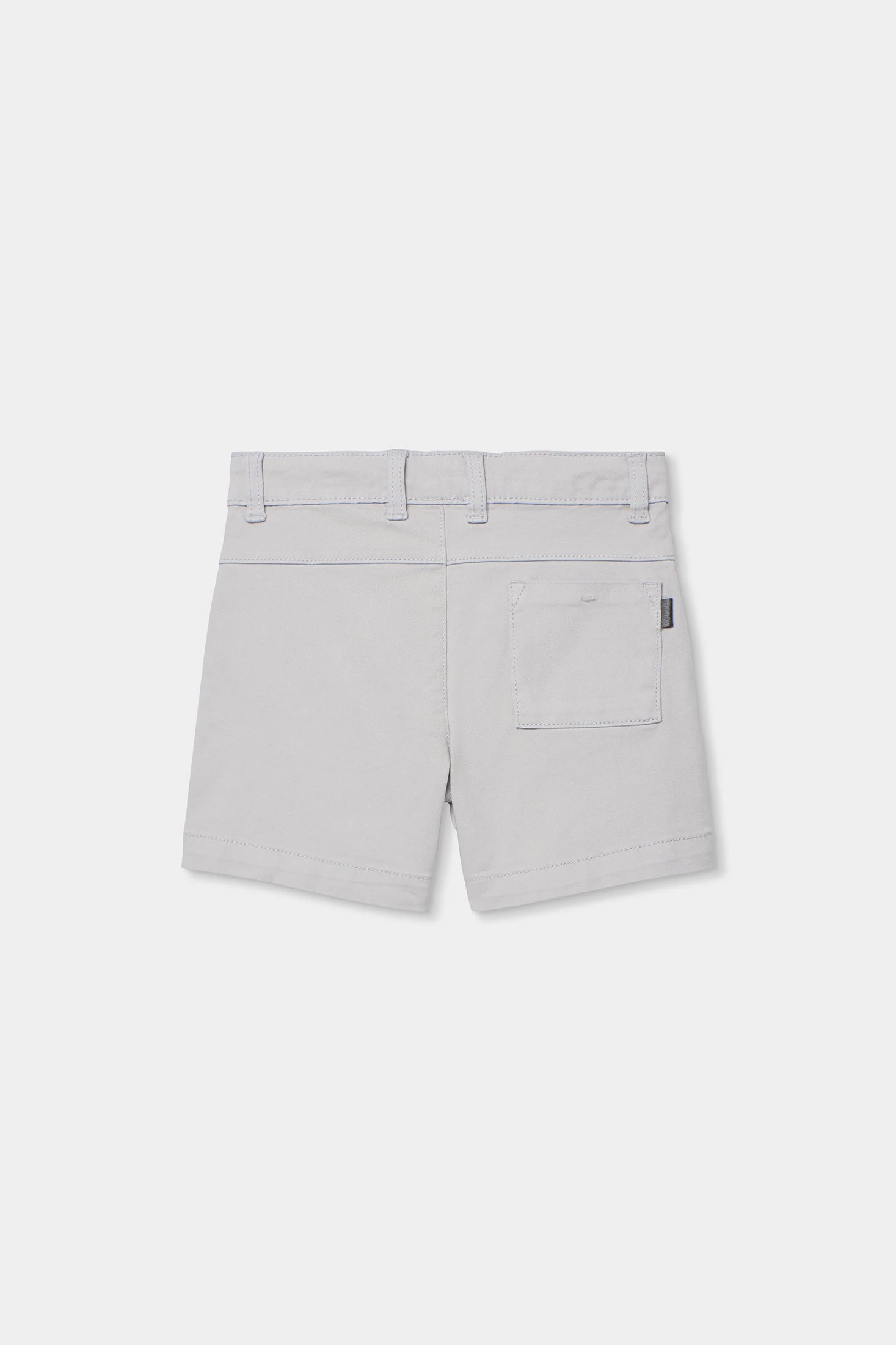 Greyish beige cotton Bermuda shorts for boys, versatile and comfortable, ideal for summer. Its smooth and classic design with front pockets offers functionality and style. Available in sizes ranging from 2 to 14 years, adapting to the child's growth. The cotton fabric is fresh and lightweight, perfect for maintaining comfort on warm days. Easily pairs with brightly coloured T-shirts for a casual and modern look.