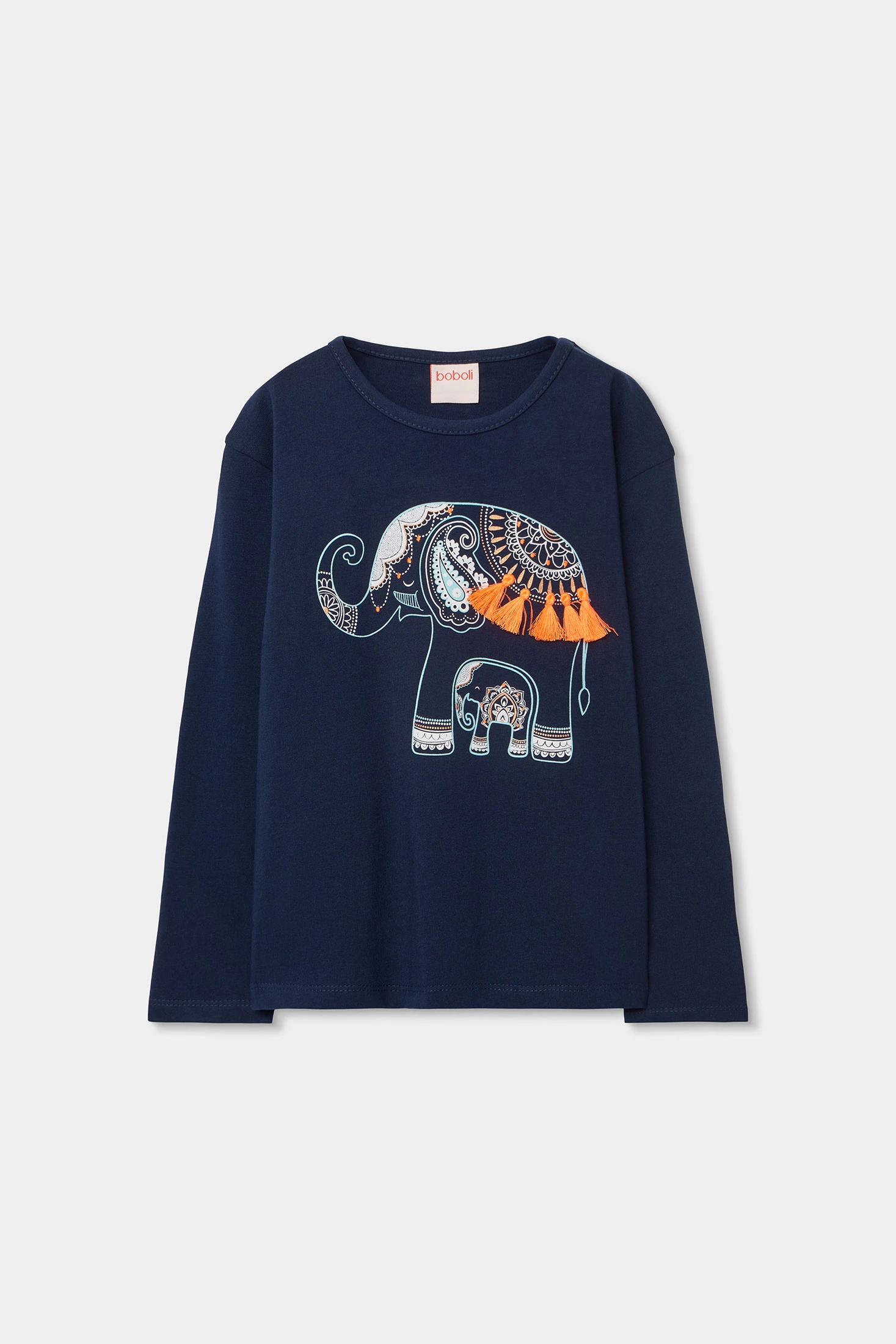 Navy blue knitted T-shirt for girls, ideal for the autumn and winter season. Made from cotton, it offers comfort and softness. It features a charming elephant design with decorative details. The round neck and long sleeves are perfect for colder days. Available in sizes from 12 months to 14 years, it adapts to each girl?s growth. This T-shirt is versatile and easy to pair, perfect for a casual and comfortable look on any occasion.