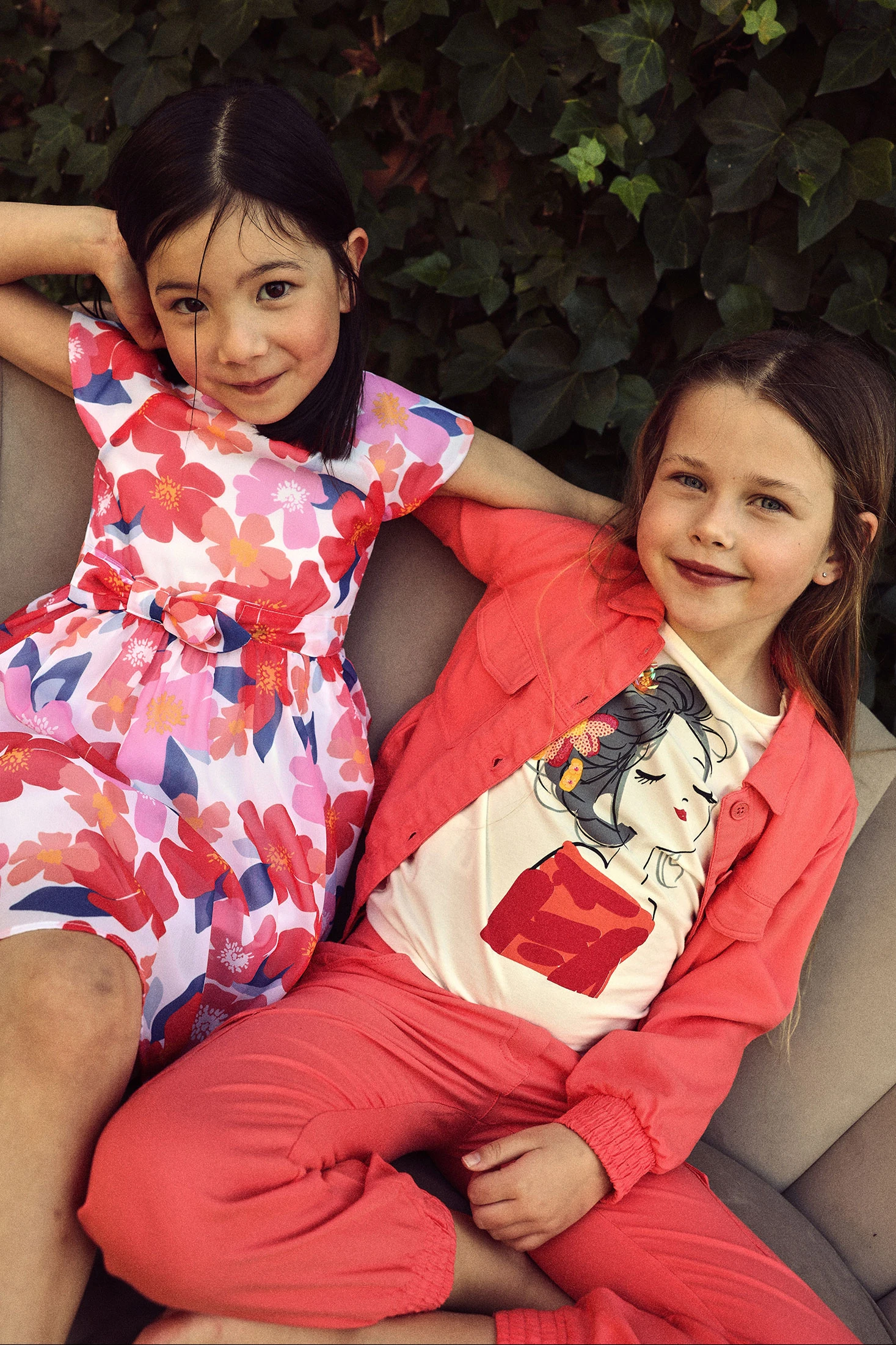 Viscose twill jacket for girls, perfect for the cooler days of spring or summer, crafted in a soft fabric that ensures comfort and warmth. Its strawberry colour design makes it versatile and easy to mix with different styles. Featuring a button closure and functional pockets, it offers practicality and style. Available in sizes from 2 to 14 years, it suits various ages and growth stages. Ideal for completing a casual or elegant look, keeping your girl warm and stylish.