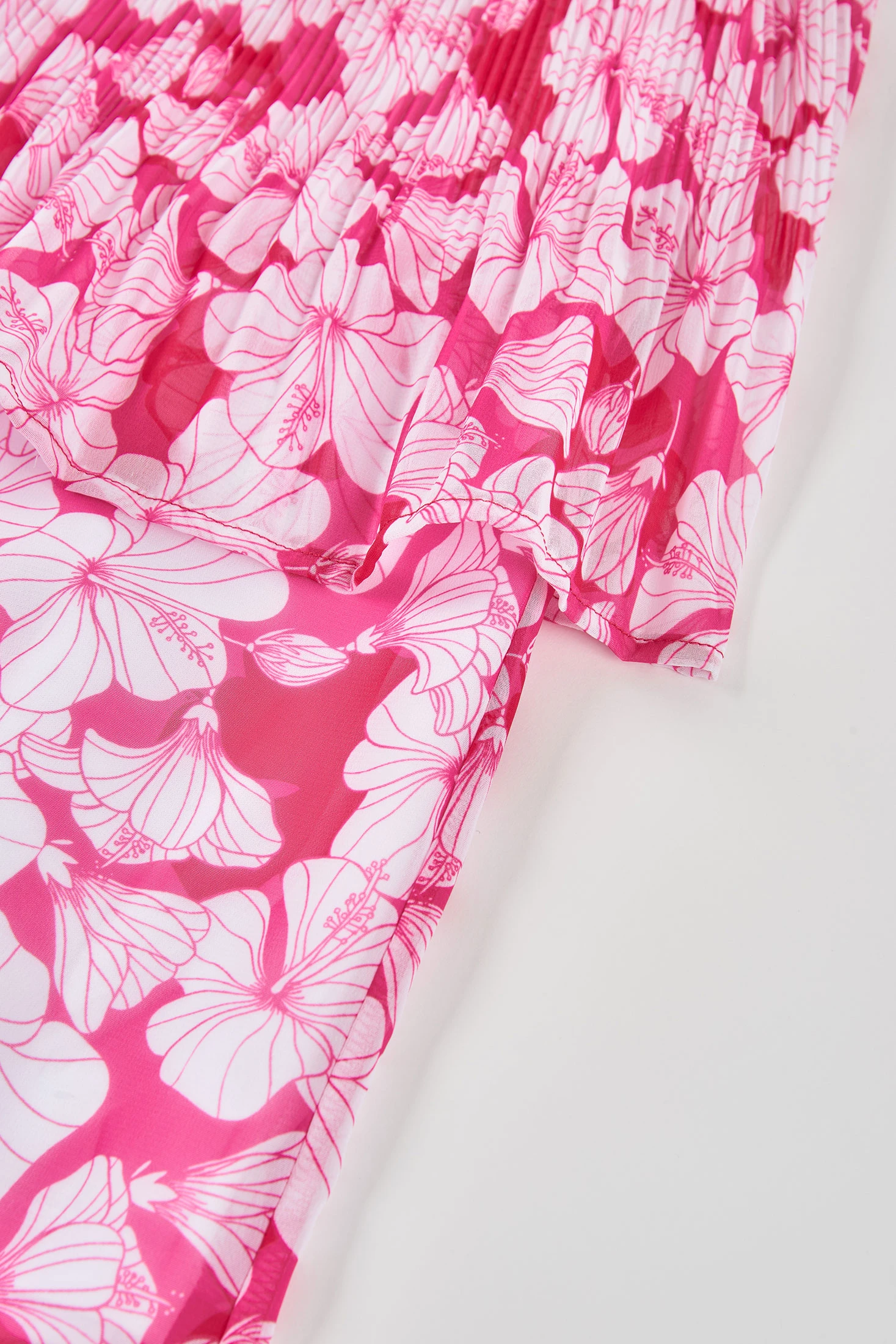 Printed chiffon jumpsuit in a vibrant pink colour is ideal for warm days. Its design features flowers that add a cheerful and sophisticated touch. Thin straps and lightweight material make it perfect for summer, providing freshness and comfort. Available in sizes from 2 to 14 years, it accommodates girls' growth. The versatile style allows it to be easily paired with light accessories, making it ideal for casual occasions and outdoor events.