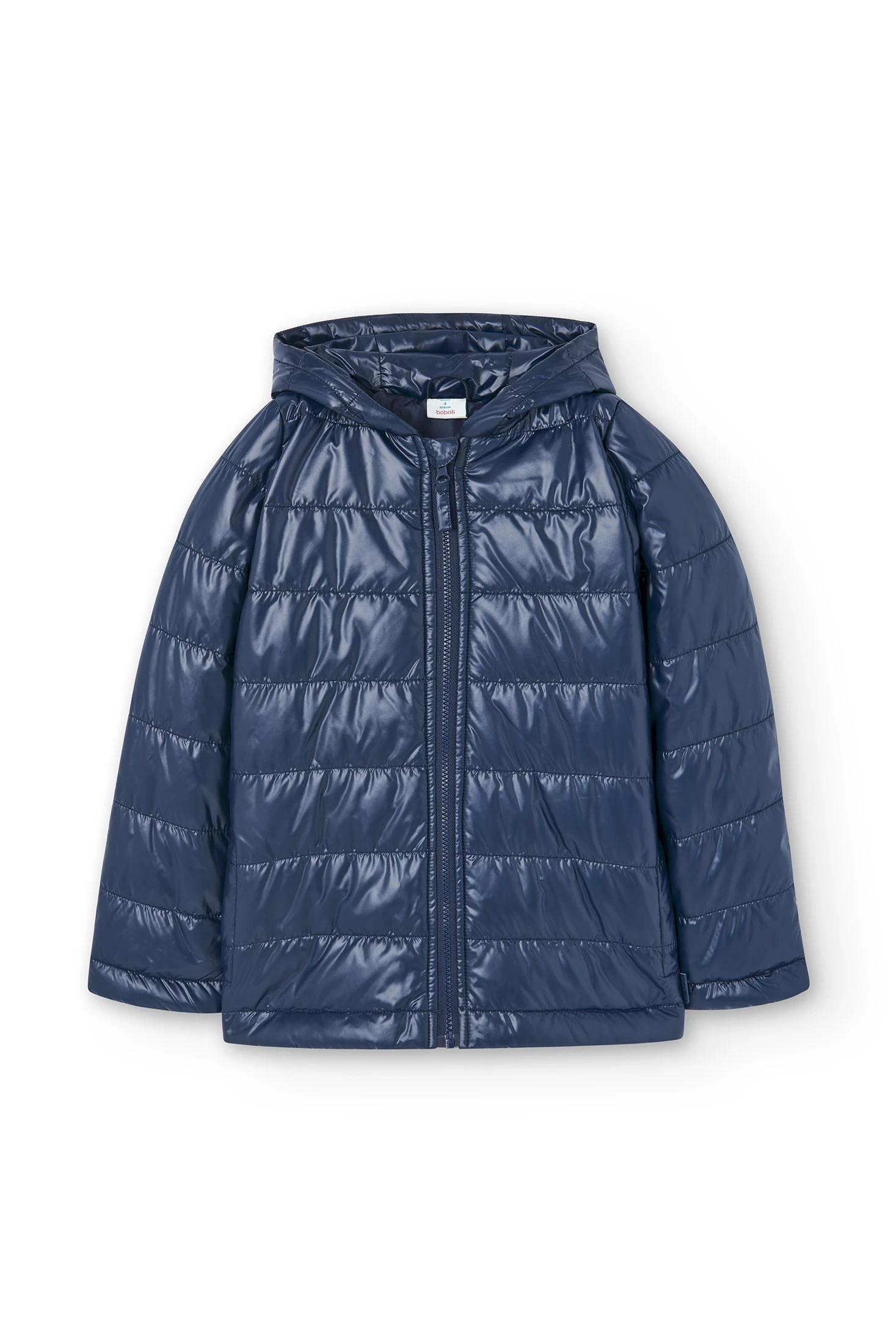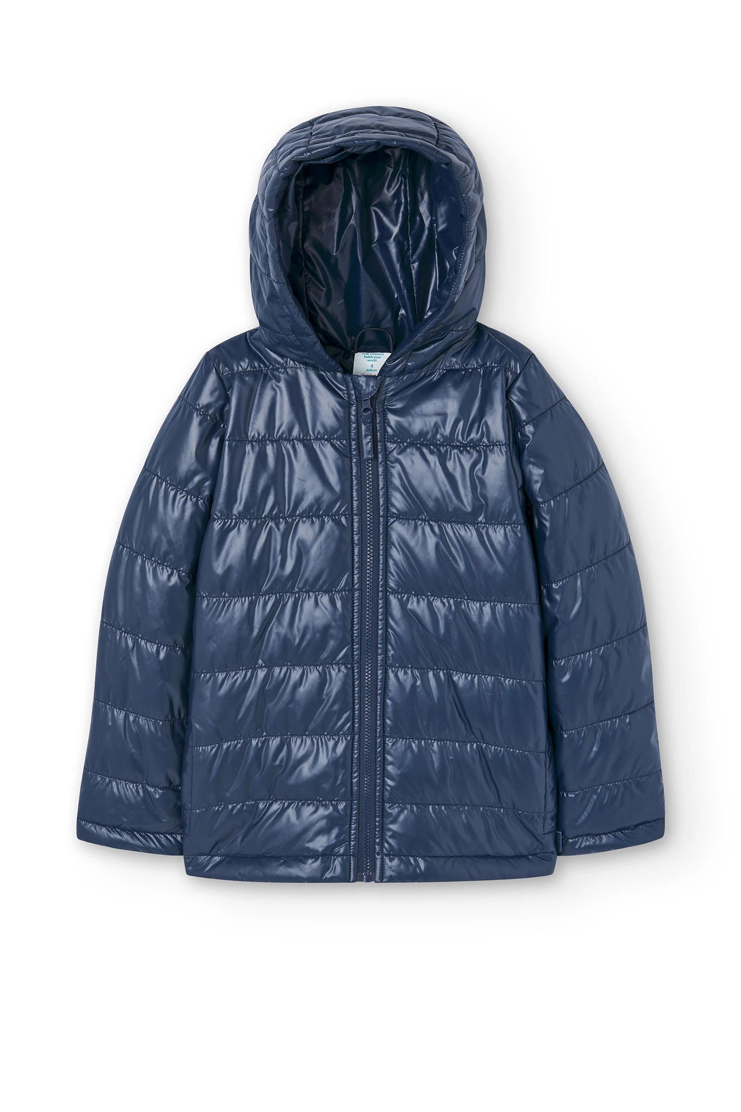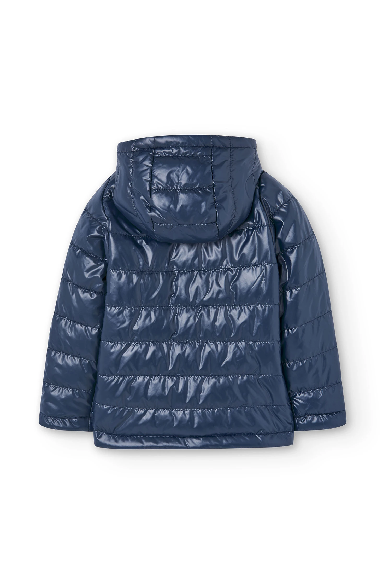 This is a technical fabric parka for girls, available in sizes ranging from 4 months to 16 years. It's a plain, navy blue garment, perfect for in-between seasons. The parka features a hood, lined for extra warmth, and long sleeves to keep your child cosy. The fabric is flat, ensuring comfort and ease of movement. It fastens with a zip, making it easy for your child to put on and take off. This parka is a practical and stylish choice for your little one's wardrobe.