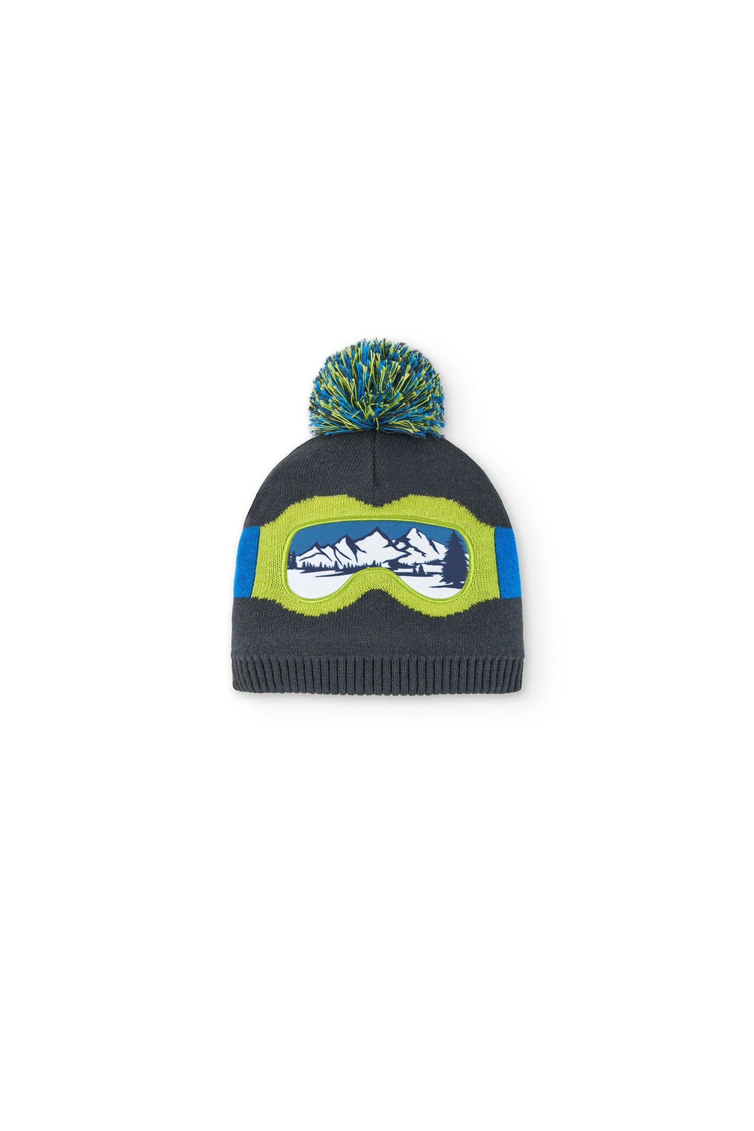 Dark grey hat with snow goggles