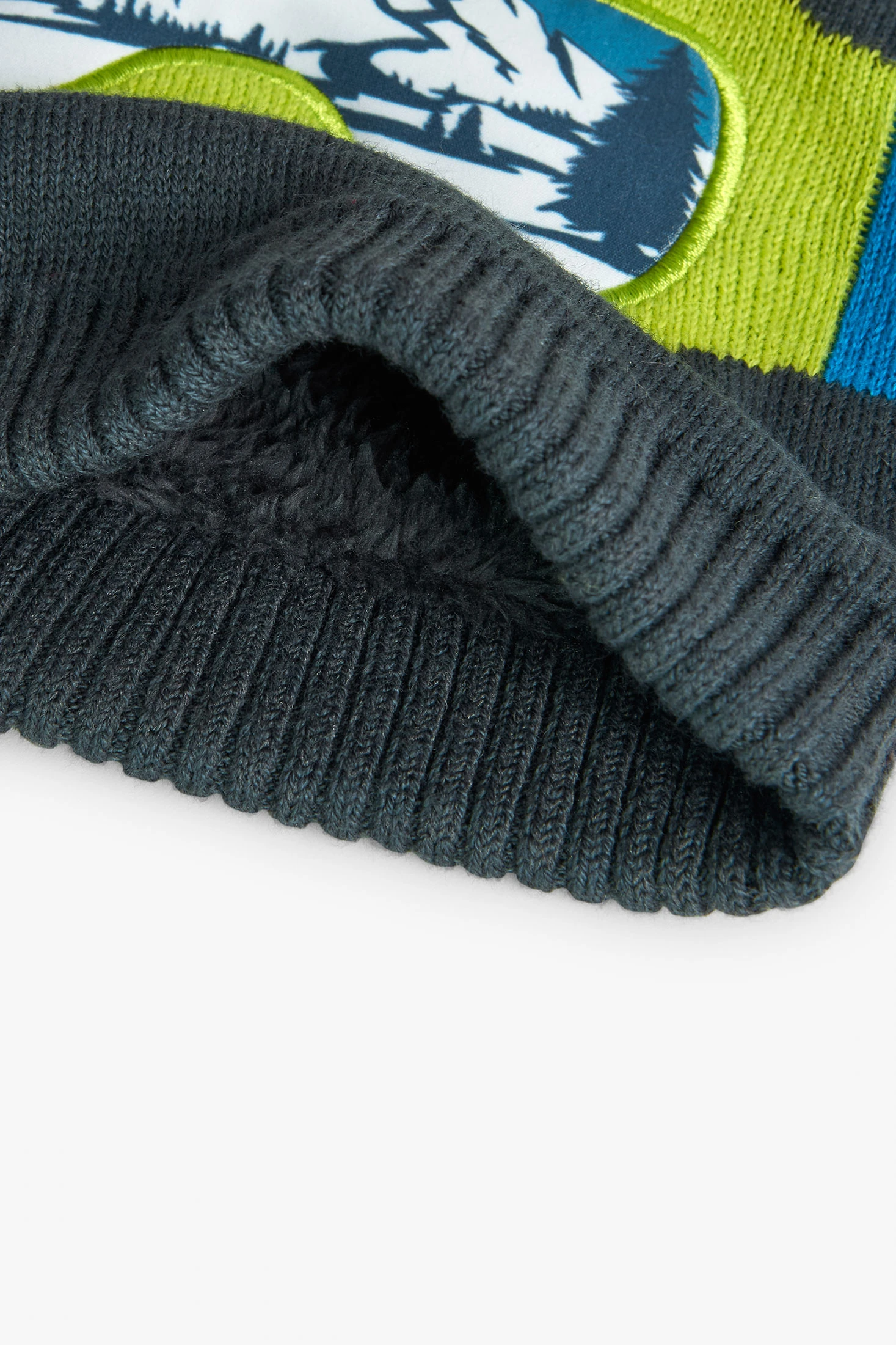 This is a knitted cap for boys, perfect for winter. Its dark grey knit fabric gives it a modern and versatile touch. The printed glasses decoration adds a fun and original detail. It is available in various sizes, specifically M/50, L/52, XL/54, and XXL/56. This cap will not only keep your little one warm during the coldest months but also give them a unique and modern style. Ideal for any occasion, from a walk in the park to a family outing.