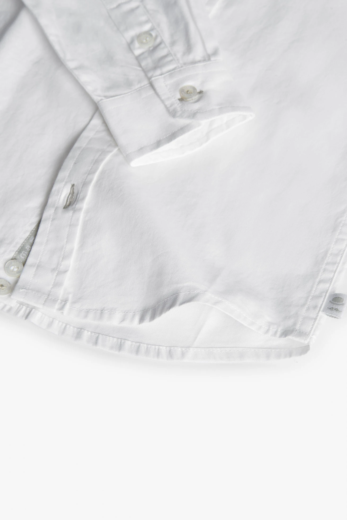 This is a boy's oxford shirt in an attractive white colour, ideal for the spring and summer season. The soft and lightweight fabric provides all day comfort. The shirt features a cute little pineapple print, adding a fun touch to the design. It has a classic collar and button-down cut, making it suitable for both casual and dressier occasions. It is available in a range of sizes for boys from 4 to 16 years old, and is a great choice for pairing with shorts or chinos, ensuring a cool and stylish look.